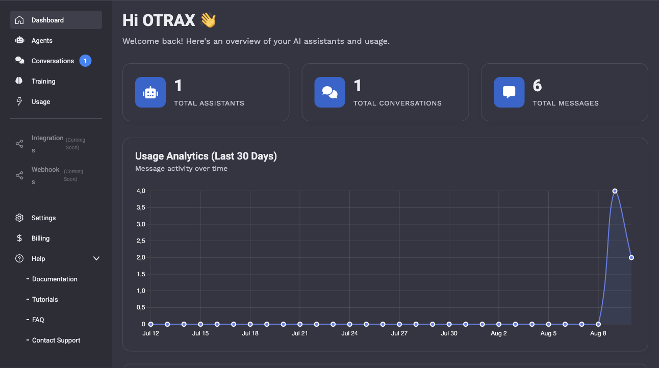 Otrax rend l'automatisation IA ridiculement simple. Un clic pour créer, un clic pour déployer, un clic pour évoluer. Aucune compétence technique requise - cliquez simplement et regardez votre agent IA prendre vie en quelques secondes.